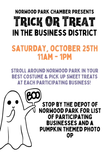 Stop at each participating business in Norwood Park on Saturday, October 25th in your best costume and pick up sweet treats along the way!! This is a family friendly and FREE event!
